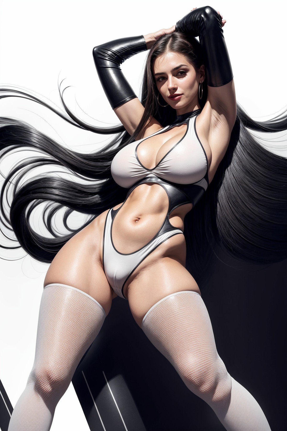 1girl, (full body shot:1.3), nsfw, naked woman in tight leggings, smile512, flexible pose, white tights, tight halter shirt, white shirt, huge breasts, huge butts, thick thigh, thick legs, see-through pubic hair, see-through pussy, pussy cleavage, big cameltoe, navel, simple background, (masterpiece:1.3), extremely high details, (best quality:1.3), absurdres, high resolution, hyper-detailed, ray-tracing, vibrant, intricate, sharpness and clarity, Vector art, Vivid colors, Clean lines, Sharp edges, Minimalist, Precise geometry, Simplistic, Smooth curves, Bold outlines, Crisp shapes, Flat colors, Illustration art piece, High contrast shadows, Technical illustration, Graphic design, Vector graphics, High contrast, Precision artwork, Linear compositions, Scalable artwork, Digital art